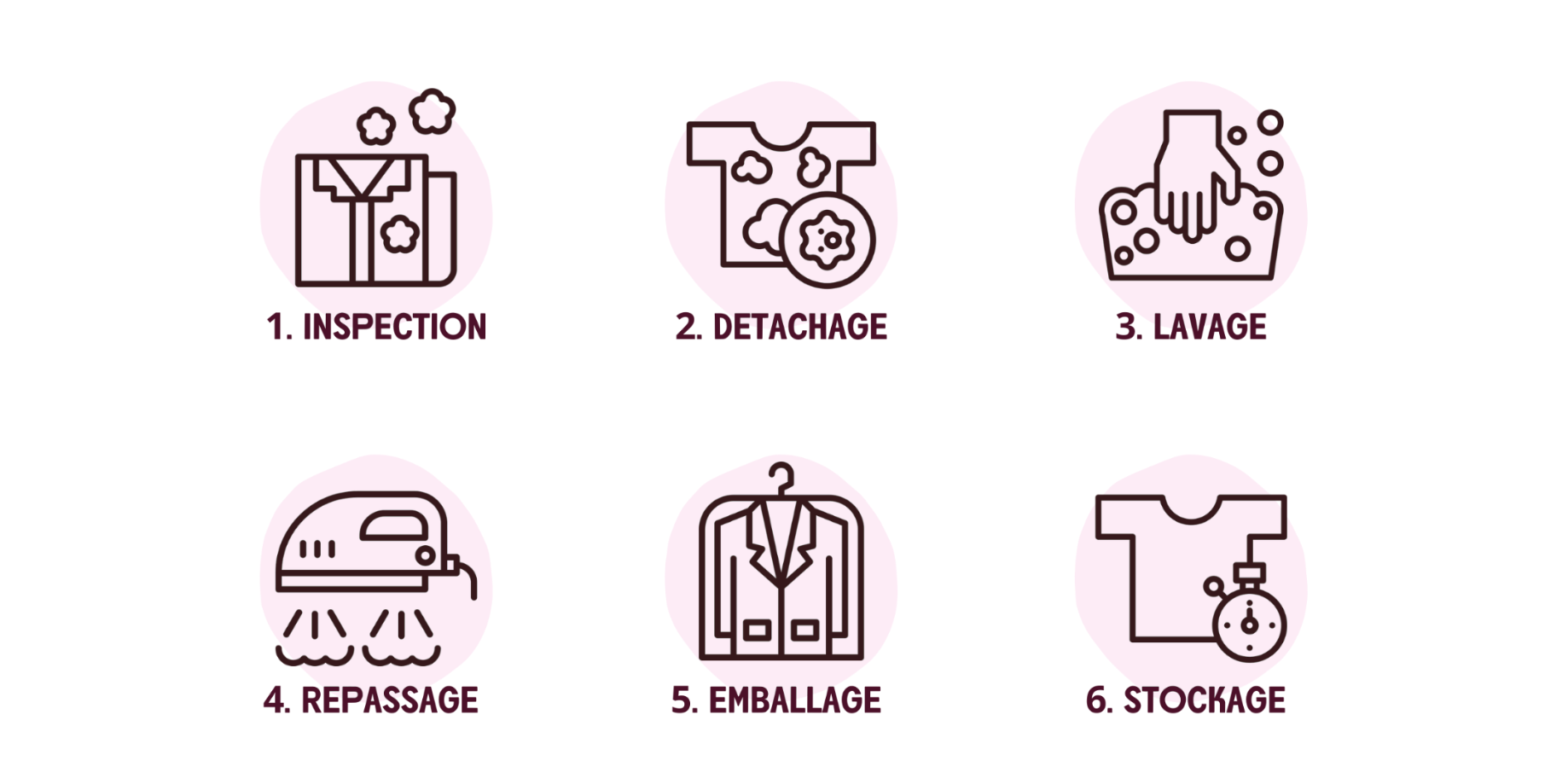 Un savoir faire haut de gamme au service d'un processus minutieux en 6 étapes. L’art de laver et d’entretenir un vêtement se transmet de génération en génération. Là où certains privilégient la quantité et risque de rendre vos vêtements avec quelques défauts, nous faisons le choix de vous fournir un service “premium”